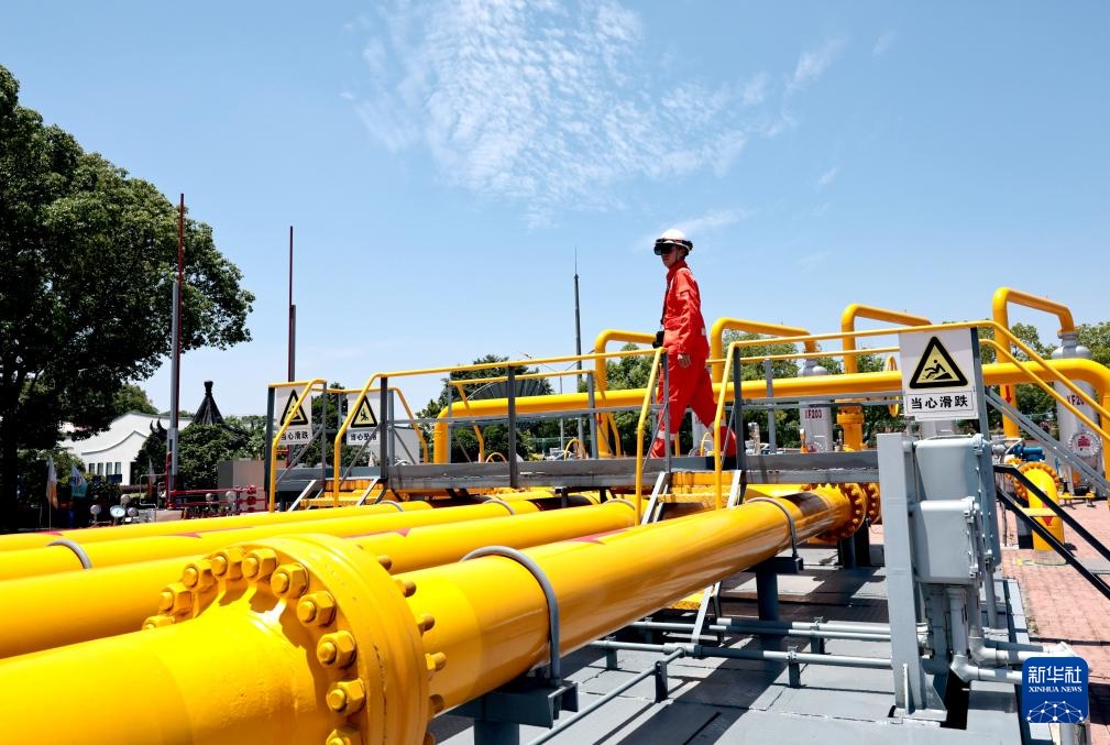 6月5日拍摄的位于上海青浦的国家管网集团西气东输公司上海白鹤站(无人机照片)。