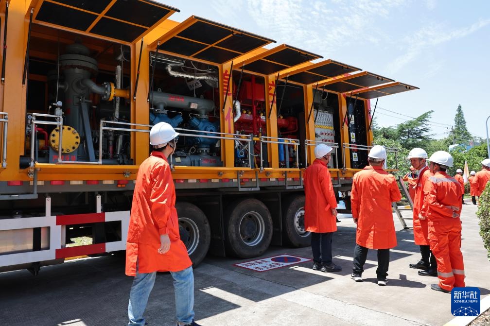 6月5日,参观者在一辆天然气回收车旁交流讨论。