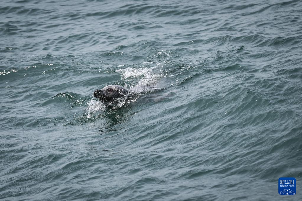 6月6日,被放归的西太平洋斑海豹在大连市三山岛附近海域活动。