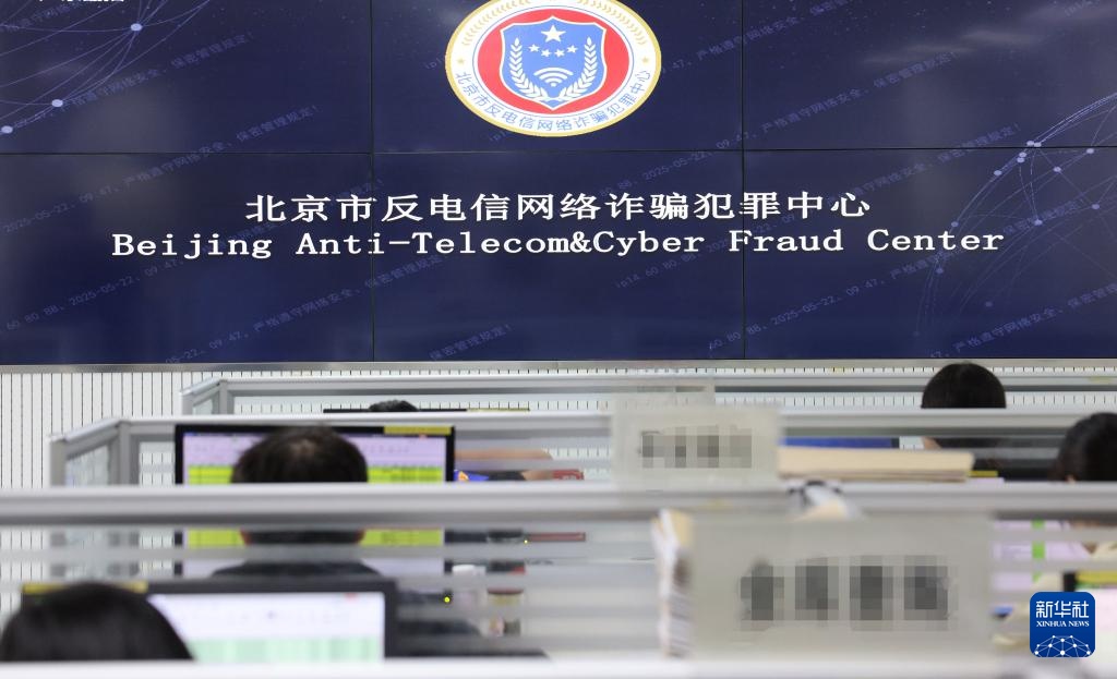 5月22日,在北京市公安局刑侦总队北京市反电信网络诈骗犯罪中心,工作人员在分析研判涉电诈线索。