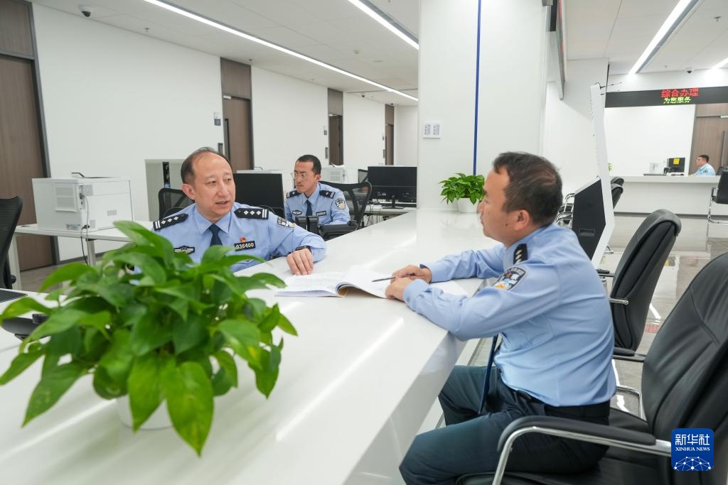 5月21日,民警在北京市公安局海淀分局执法办案管理中心一站式综合服务保障专区办理案件审核业务。