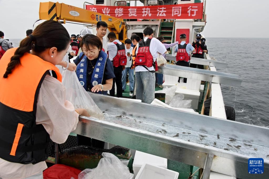 当日,青岛市海洋发展、渔政等部门联合开展2025年渔业资源增殖放流暨以增殖放流方式替代性修复受损生态环境活动,现场投放中国对虾、褐牙鲆鱼等多个品种水产种苗。