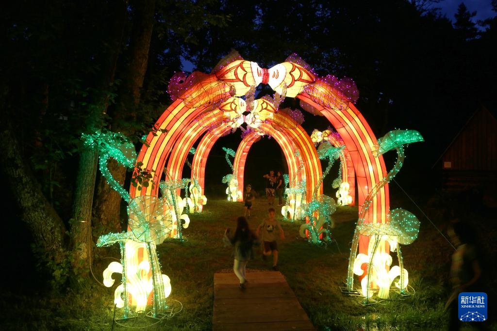 这是2019年6月23日在罗马尼亚锡比乌市阿斯特拉露天博物馆拍摄的自贡彩灯展。