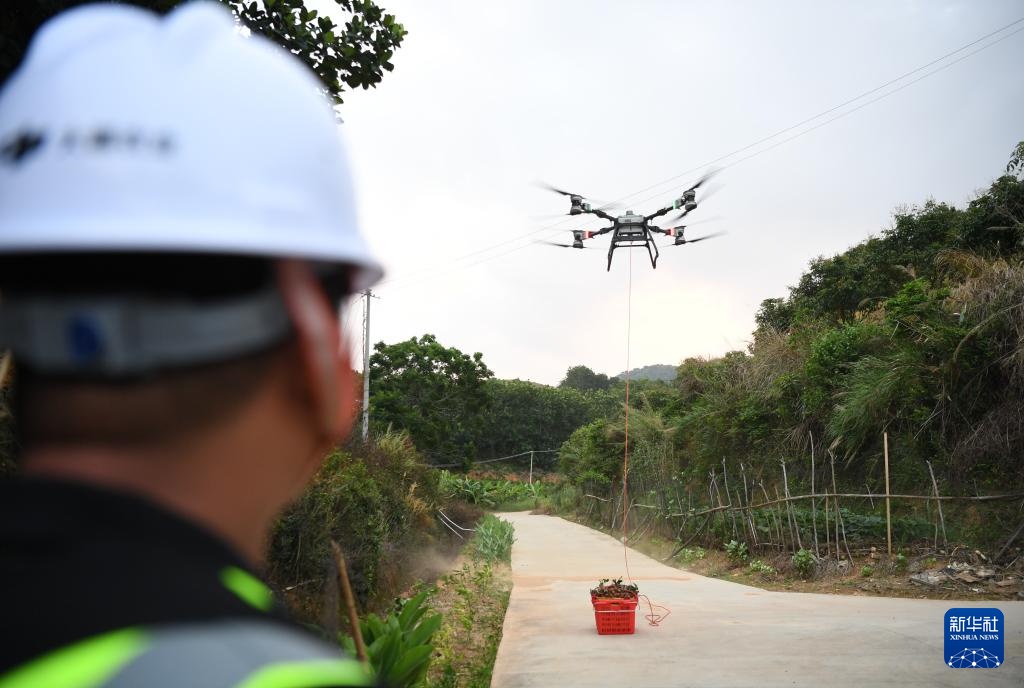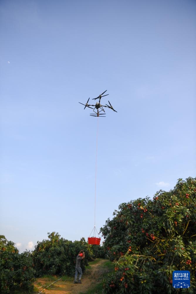 近日,全国荔枝主产区茂名迎来丰收季。面对荔枝“一日色变、三日味改”以及山地运输难的特性,当地采取无人机吊运方式运送新鲜采摘的荔枝,保障果品以更好的状态发往全国市场。