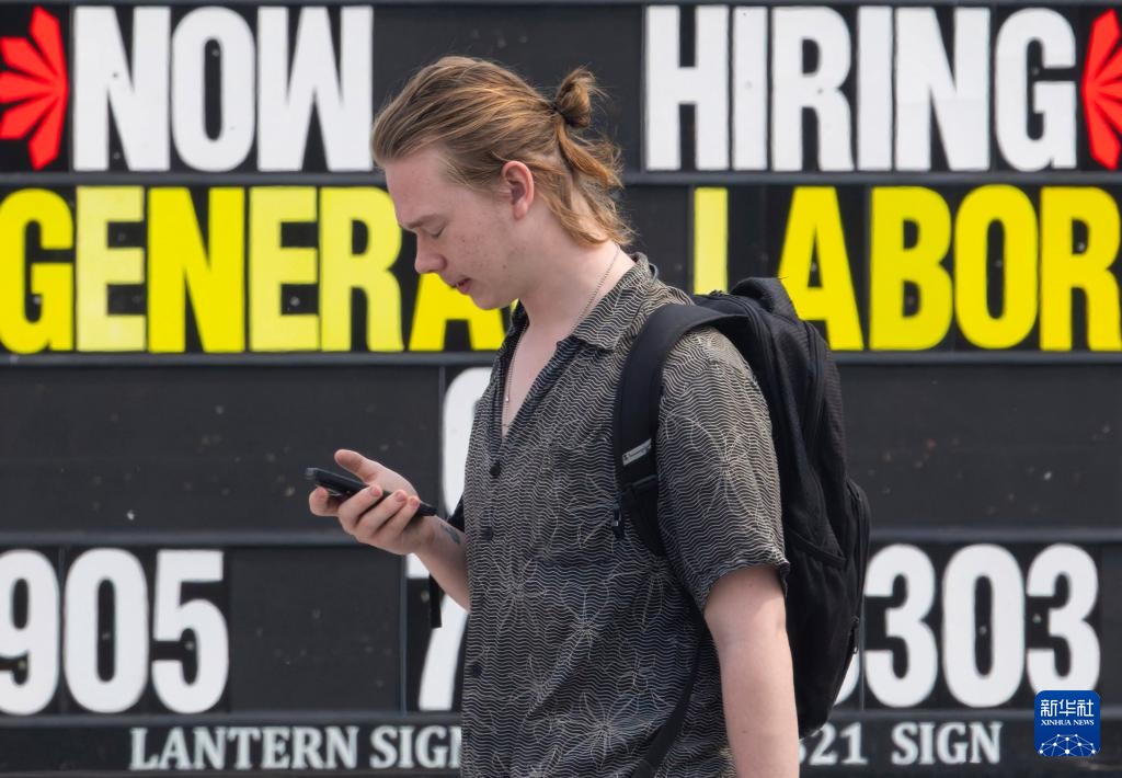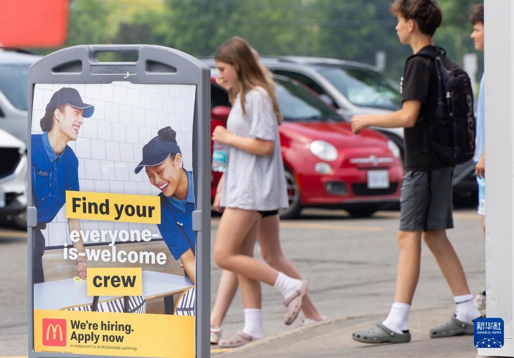 6月6日,在加拿大多伦多,行人从一处快餐店外的招聘广告前经过。