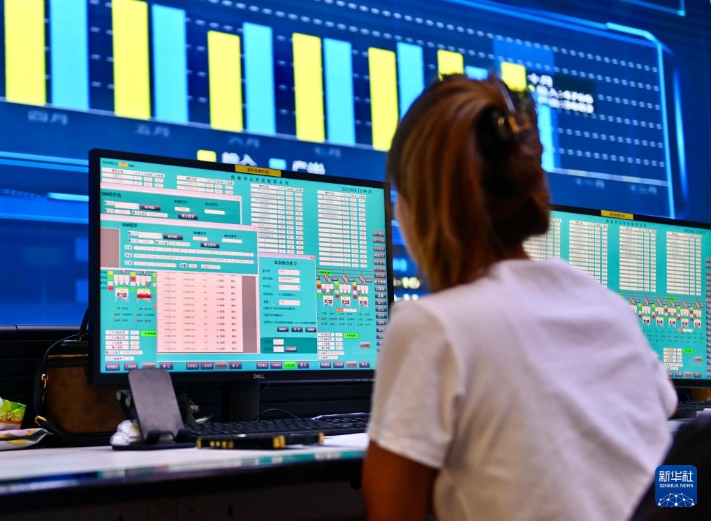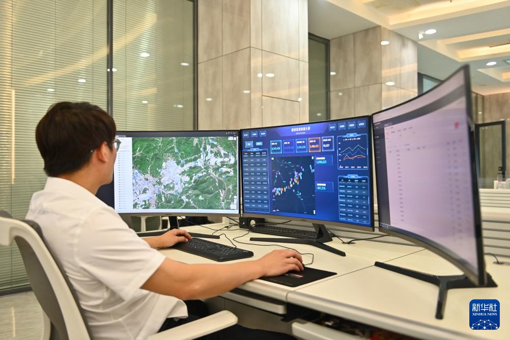 6月6日,工作人员在智慧菱镁大数据中心查看数据。