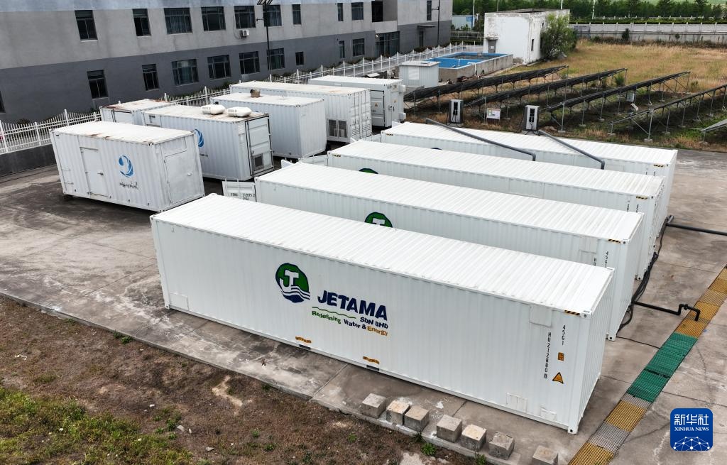 这是江苏丰海新能源淡化海水发展有限公司生产的海水淡化集装箱(6月7日摄,无人机照片)。