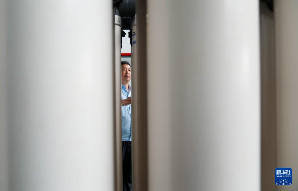 6月7日,江苏丰海新能源淡化海水发展有限公司工作人员杨新国在海水淡化车间巡回检查。