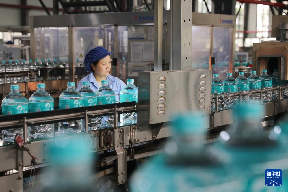 这是6月7拍摄的江苏丰海新能源淡化海水发展有限公司灌装车间。