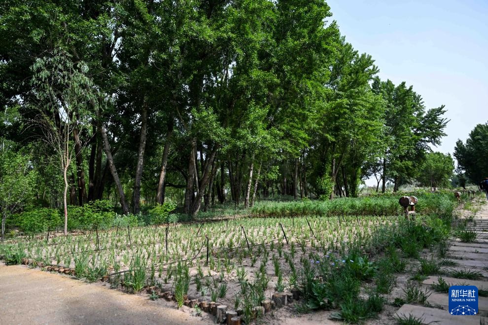 这是5月29日拍摄的巴彦淖尔市临河区国营新华林场里的沙生植物苗圃。
