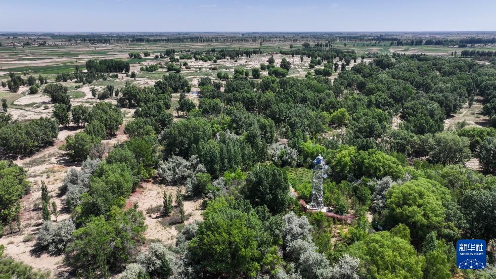 这是6月5日在巴彦淖尔市临河区拍摄的郁郁葱葱的国营新华林场(无人机照片)。