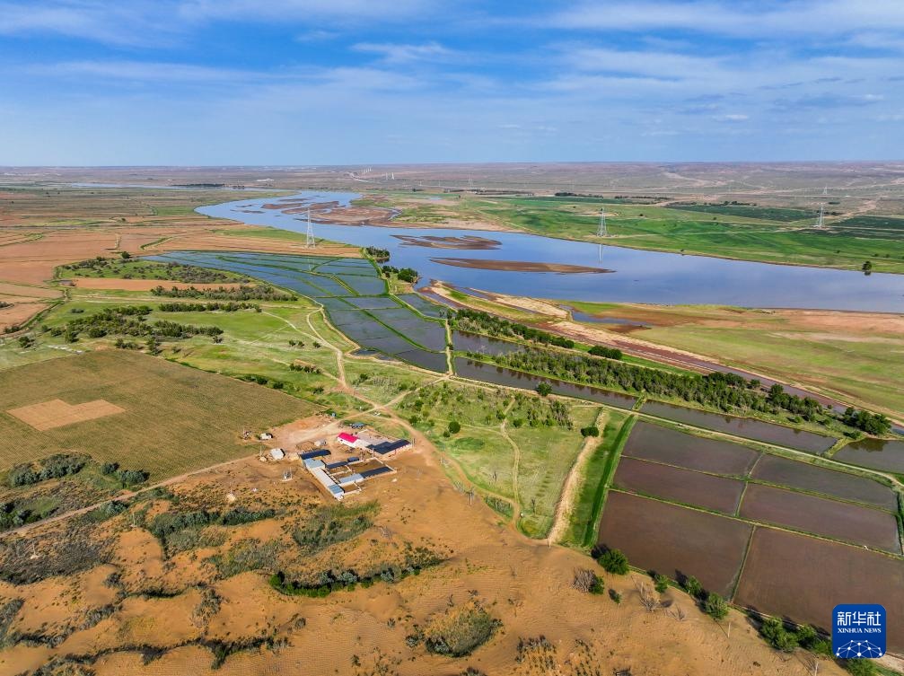 在巴彦淖尔市磴口县刘拐沙头,黄河蜿蜒而过(6月5日摄,无人机照片)。