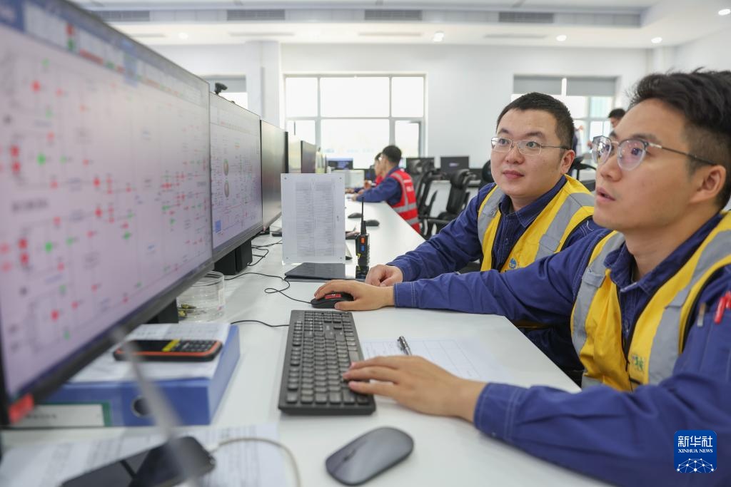 在哈密—重庆±800千伏特高压直流输电工程新疆送端站——巴里坤换流站,运检人员在主控室监看运行数据(6月10日摄)。