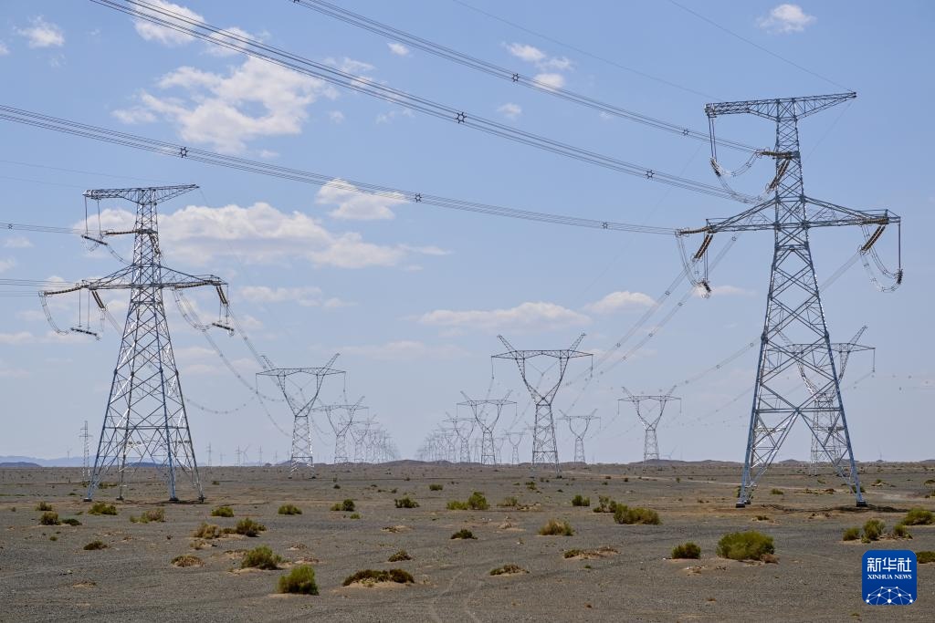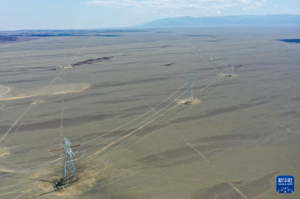 这是6月10日拍摄的哈密—重庆±800千伏特高压直流输电配套线路(无人机照片)。