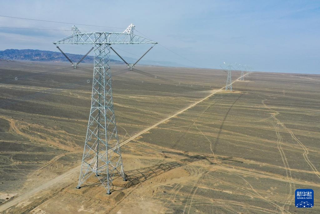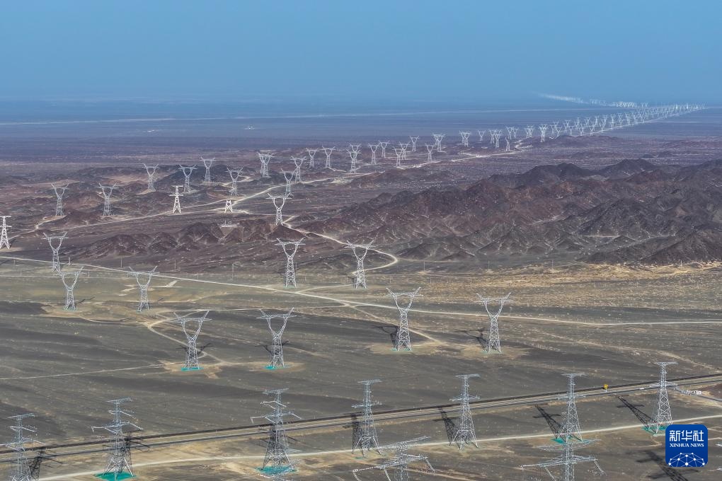 这是3月21日拍摄的哈密—重庆±800千伏特高压直流输电配套线路(无人机照片)。