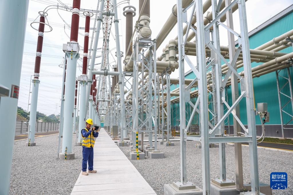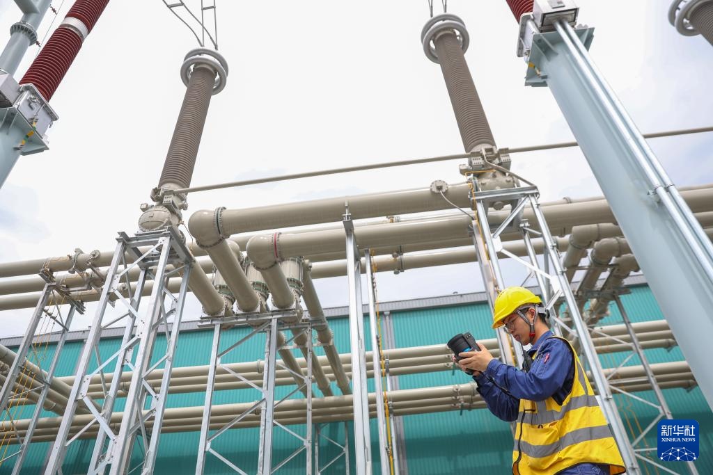 6月10日,在哈密至重庆±800千伏特高压直流输电工程渝北换流站内,国网重庆超高压公司的运维人员通过测温仪对已投运的重要保障线路进行红外测温。