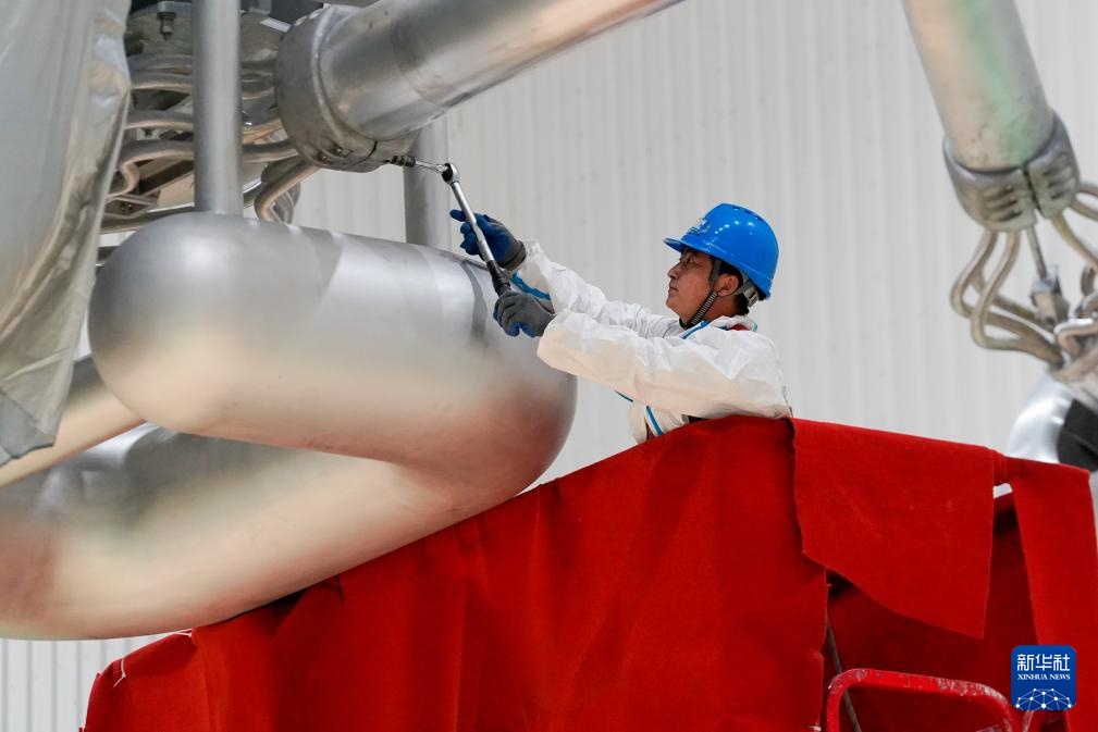在哈密—重庆±800千伏特高压直流输电工程新疆送端站——巴里坤换流站,施工人员在阀厅进行金具验收(3月21日摄)。