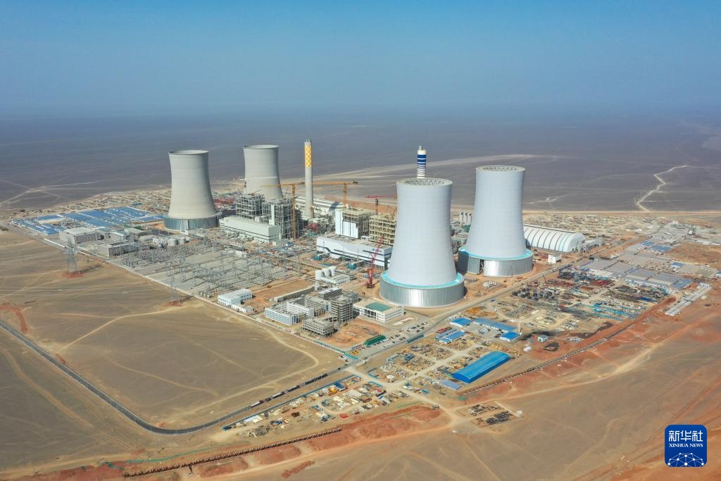 这是在新疆哈密市巴里坤哈萨克自治县拍摄的哈密—重庆±800千伏特高压直流输电工程配套火电厂(3月22日摄,无人机照片)。