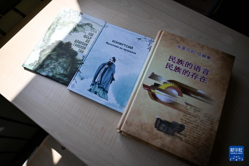 6月1日,夏冉在位于杜尚别的塔吉克斯坦民族大学孔子学院外翻阅书籍。