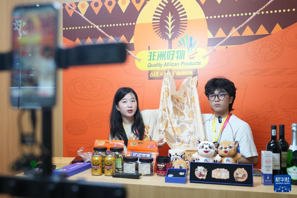 6月12日,在长沙国际会展中心,主播在直播间内介绍非洲商品。