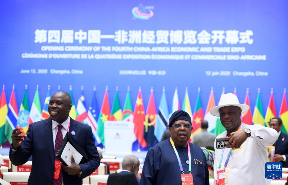 6月12日,在长沙国际会议中心,外国嘉宾参加第四届中国-非洲经贸博览会开幕式。