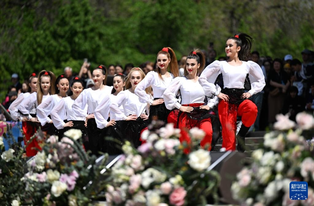 演员在哈萨克斯坦阿拉木图表演舞蹈,庆祝民族团结日(2025年5月1日摄)。