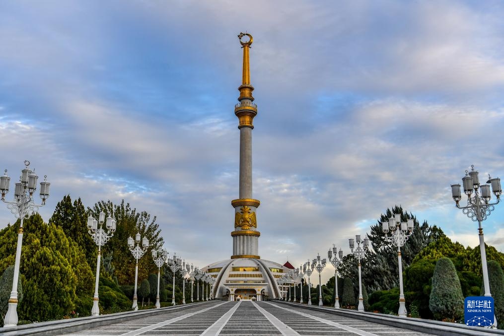 这是在土库曼斯坦首都阿什哈巴德拍摄的独立柱(2023年11月26日摄)。