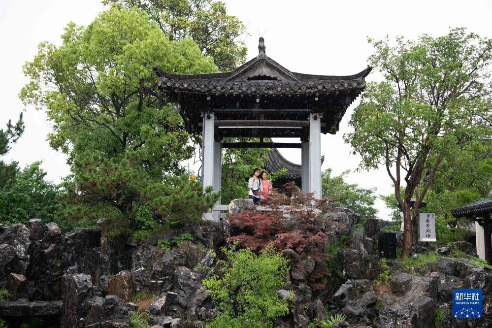 6月11日,游客在位于安徽省黄山市歙县的徽州府衙静治园参观。