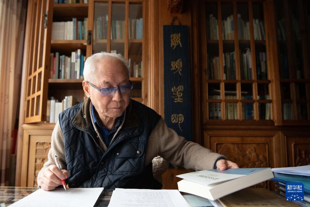 4月2日,在安徽省黄山市屯溪区的家中,徽州古建筑专家程极悦进行徽州传统建筑相关题材的著述。