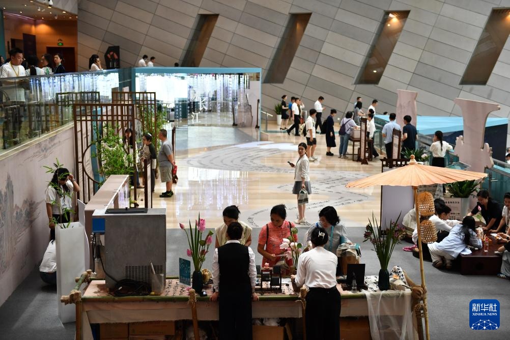 6月14日,观众在长沙博物馆体验主题游园活动。