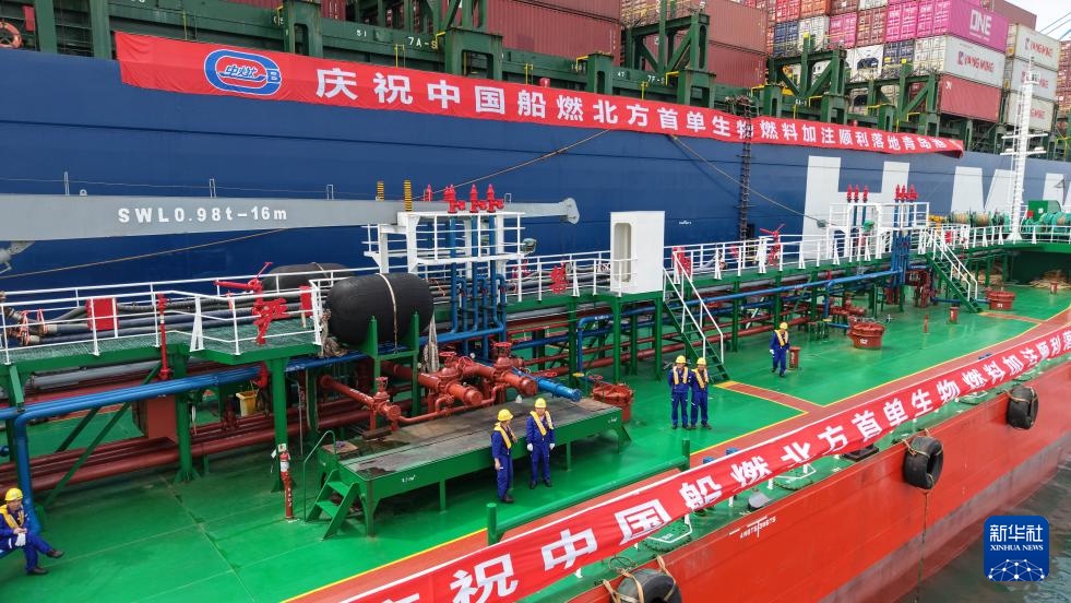 当日,北方港口首单国际航行船舶生物燃料油加注业务在山东港口青岛港完成,“现代温哥华”轮接受到1300吨B24生物燃料油补给。
