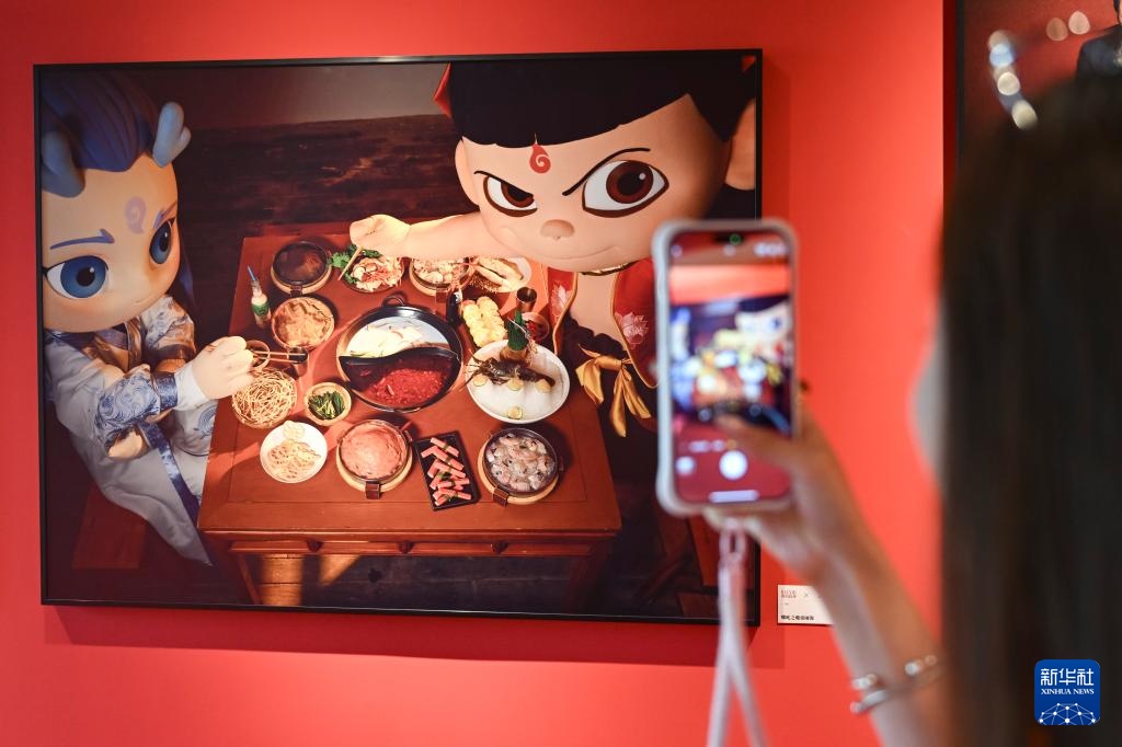 6月14日,观众在电影艺术展上拍摄展品。