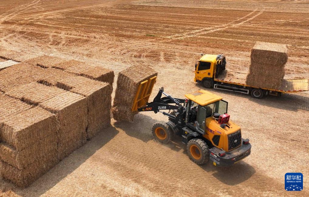 6月13日,在河北省邢台市南和区史召乡一家农民合作社,农民将秸秆码垛存放。