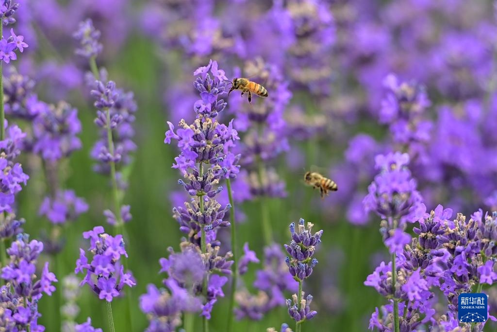 这是在新疆伊犁哈萨克自治州霍城县解忧公主薰衣草农场拍摄的薰衣草花田(6月14日摄)。