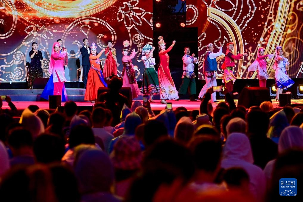 中国文联文艺志愿服务团队“送欢乐下基层”文艺演出在新疆伊犁哈萨克自治州霍城县香水体育公园举行(6月14日摄)。