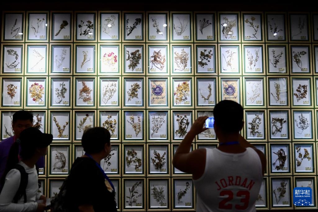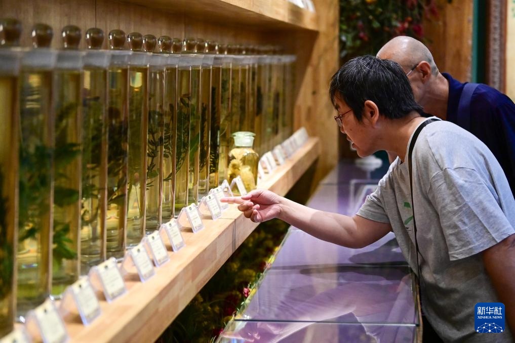 在新疆伊犁哈萨克自治州霍城县解忧公主薰衣草园,游客在薰衣草博物馆参观(6月14日摄)。