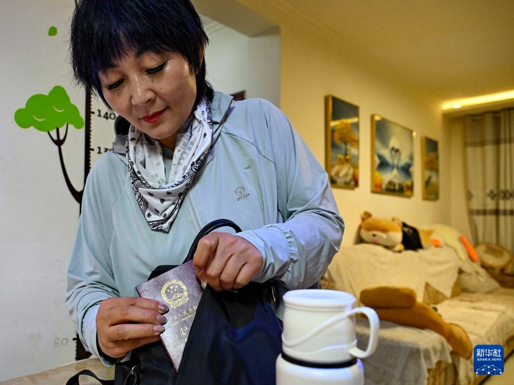 高云在执行运车任务前,在新疆霍尔果斯家中把护照装入背包中(6月9日摄)。