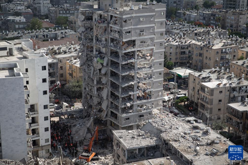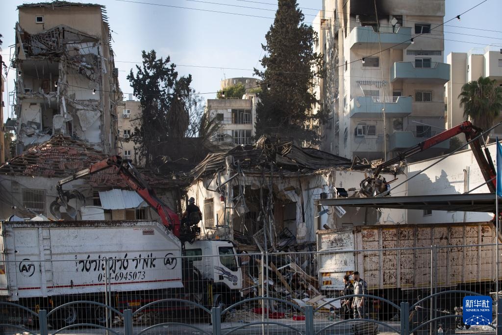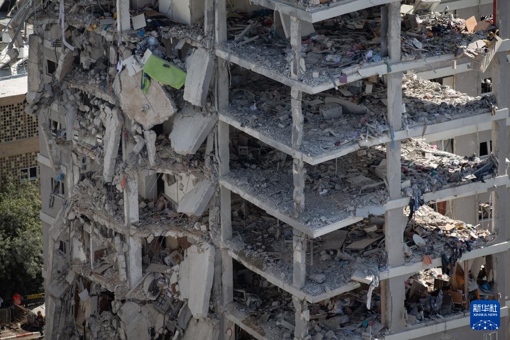 这是6月15日在以色列中部巴特亚姆市拍摄的在导弹袭击中被毁的建筑。