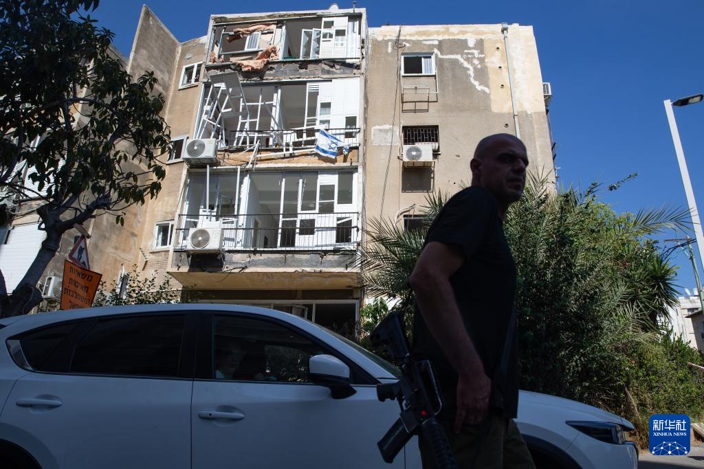 这是6月15日在以色列中部巴特亚姆市拍摄的在导弹袭击中受损的建筑。