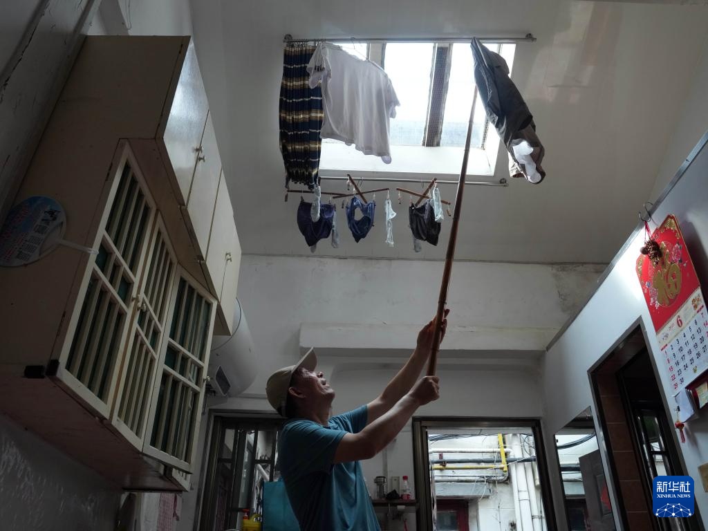 6月16日,搬迁居民韩国友在位于西康路894弄的家中收衣服。