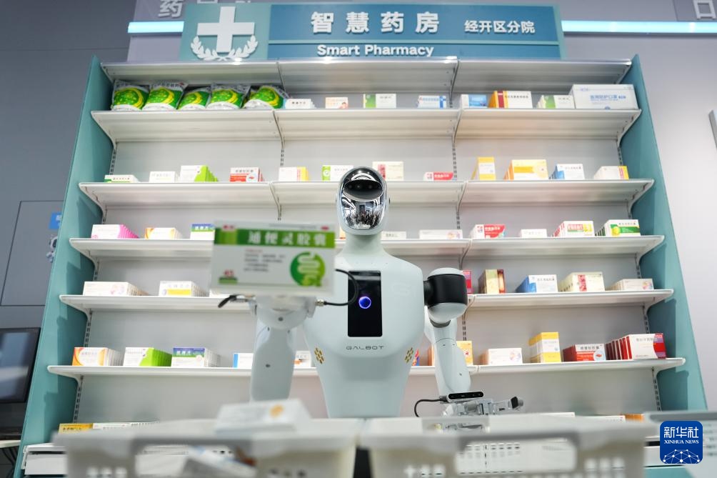 6月17日,在北京经开区的机器人大世界,银河通用的具身大模型机器人盖博特Galbot进行药店无人值守场景演示。