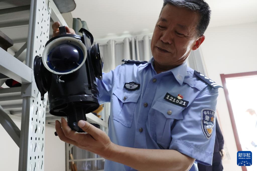 王仁福在长征警务区的铁警警史馆里展示自己收藏的铁路信号灯(6月17日摄)。