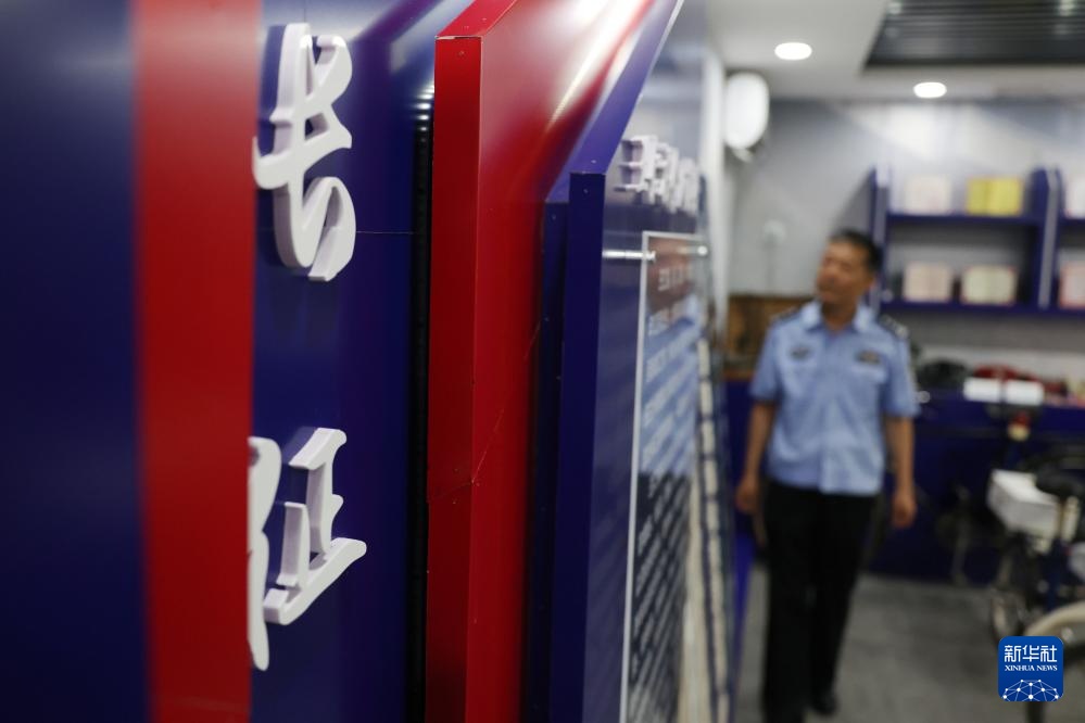 王仁福在长征警务区的铁警警史馆里(6月17日摄)。