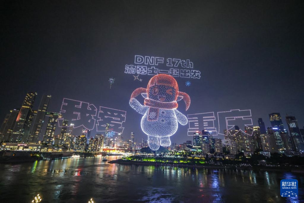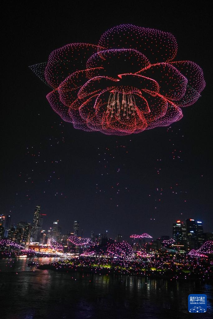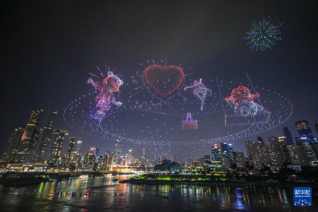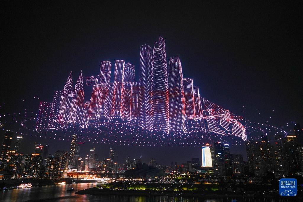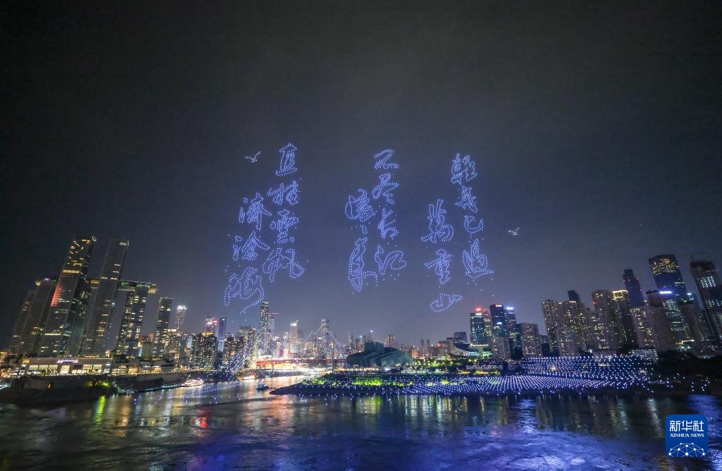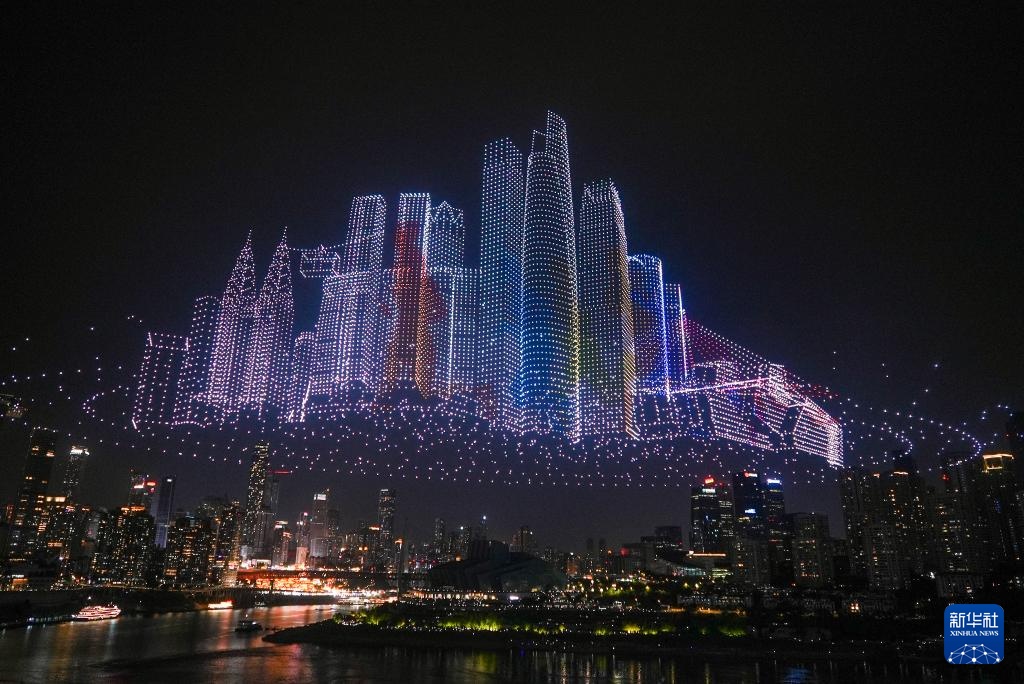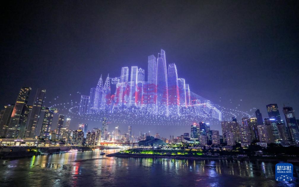 6月17日晚,重庆举行超大规模无人机灯光秀表演,由11787架无人机组成的双编队飞行从重庆市南岸区弹子石广场起飞,创造了“最多无人机组成的空中图案”吉尼斯世界纪录。