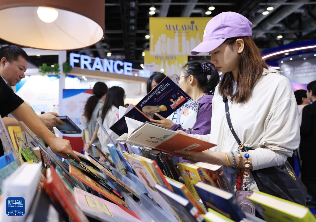 6月18日,观众在翻阅主宾国马来西亚展区的图书。