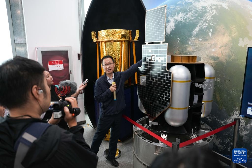6月18日,北京星河动力航天科技股份有限公司的执行总裁夏东坤在北京经济技术开发区向媒体介绍爱神星留轨级模型。