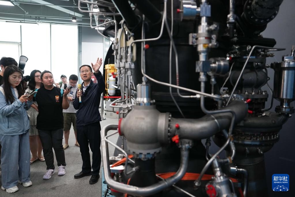 6月18日,北京星河动力航天科技股份有限公司的执行总裁夏东坤在北京经济技术开发区向媒体介绍智神星一号运载火箭发动机。