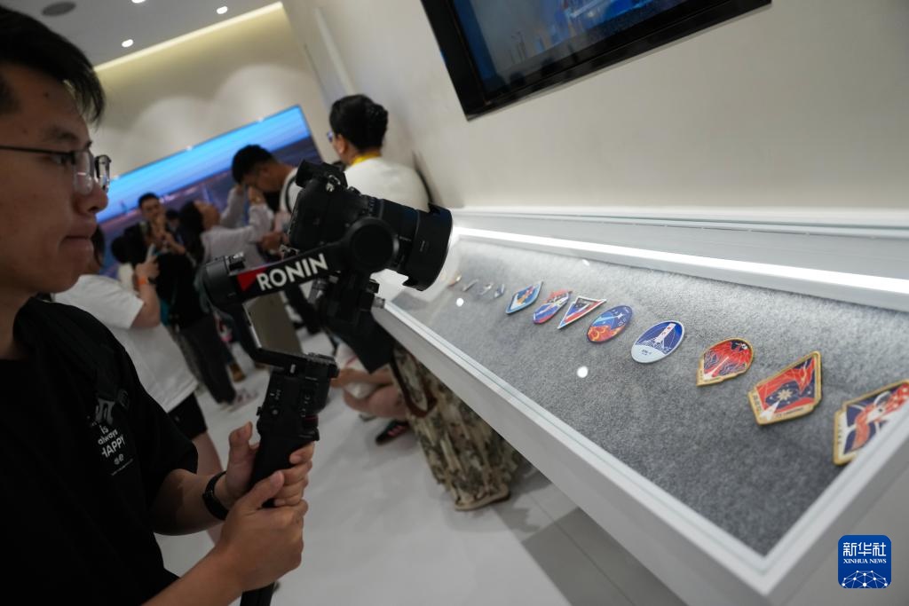 6月18日,一名记者在北京经济技术开发区蓝箭航天空间科技股份有限公司拍摄任务徽章。