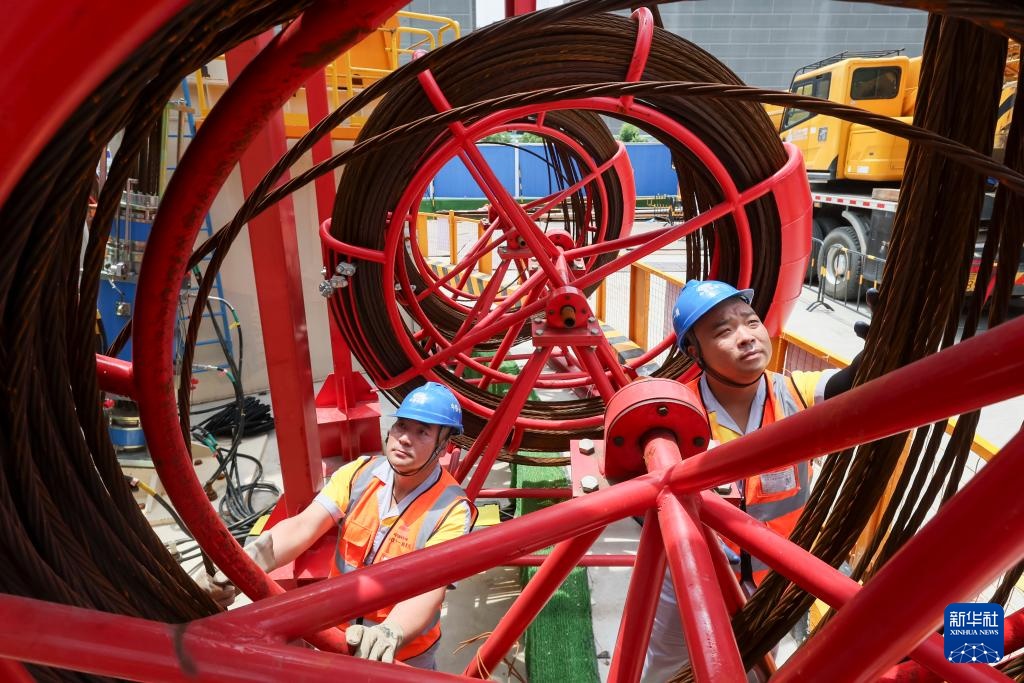 6月18日,作业人员在检查竖井掘进机吊装系统。