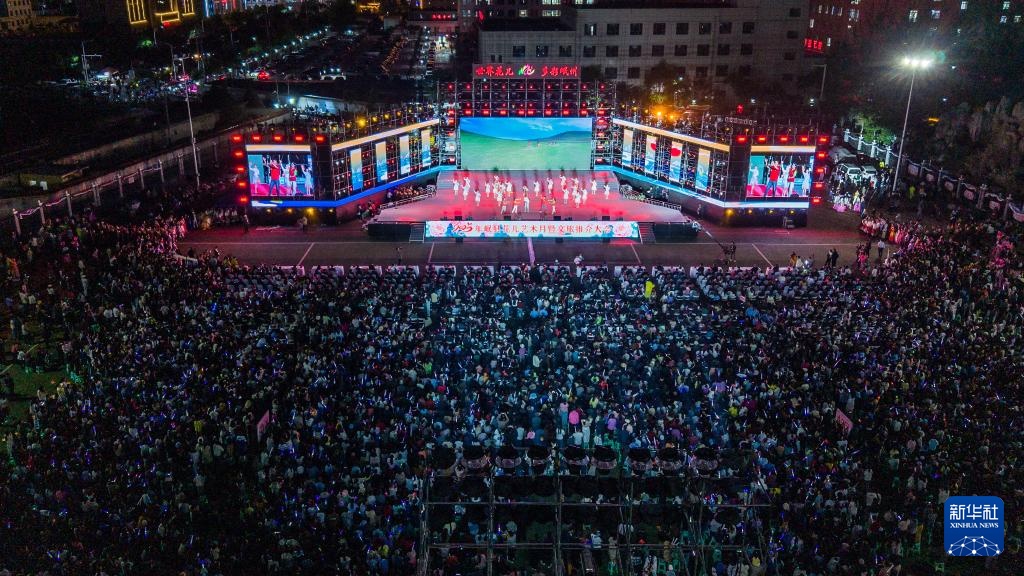 这是6月10日在甘肃省定西市岷县拍摄的2025年岷县“花儿”艺术月暨文旅推介大会开幕式现场(无人机照片)。